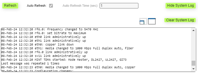 By clicking the «**System Log**» button, you can view the "System Log" section: