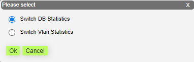 Two options are available: "Switch DB statistics" and "Switch VLAN statistics".