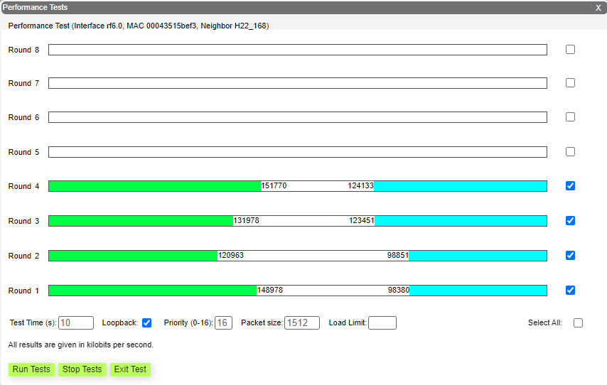 * "*Load limit*" - sets a limit on the data rate at which the test runs, in Mbps.