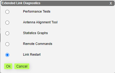 You can restart the wireless link (re-association, re-authentication and re-connection) by selecting the “**Link Restart**” radio button and then by clicking the «**OK**» button in the link options.
