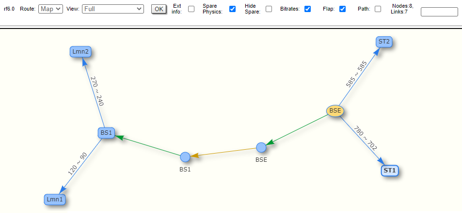 By clicking the "**Route Map**" button in the right corner under the Link Statistics table you can get the MINT topology schematic map with the visualization of the active and alternative routes to each node.