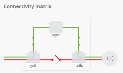 Allows to configure the traffic transfer between the network ports of the device. Configuration is performed visually using switches. The green switch indicates allowed connections, the red one - denied.